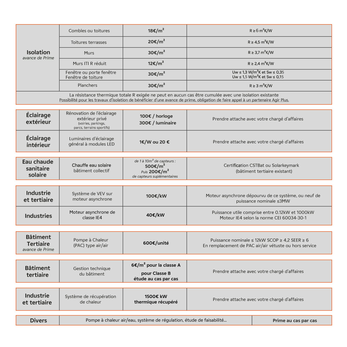 * Primes maximales. Conditions techniques et montants des aides financières Août 2023, susceptibles d’évoluer. L’aide financière constitue une subvention d’équipement ou une aide à l’achat qui n’est pas soumise à la TVA (cf. réponse ministérielle publiée le 10 mai 2016 et lettre d’information relative aux CEE de la DGEC du mois d’avril 2017).